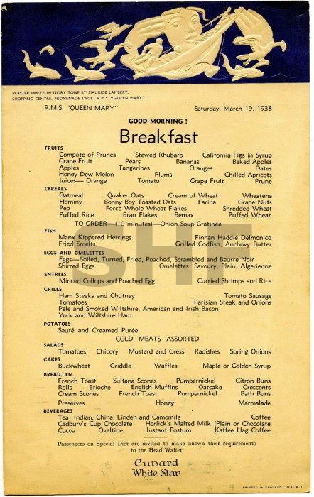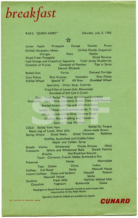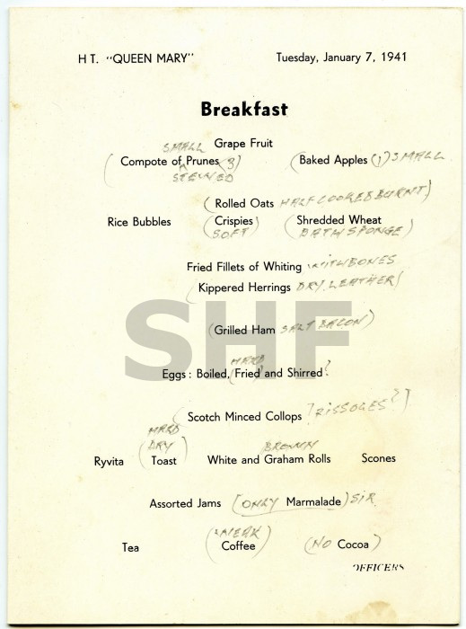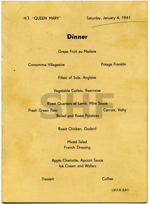 Shown below are some examples of menus over various years including 1938, 1941 and 1965. It is interesting to read the comments from passengers during the war years when she was a troop ship.
