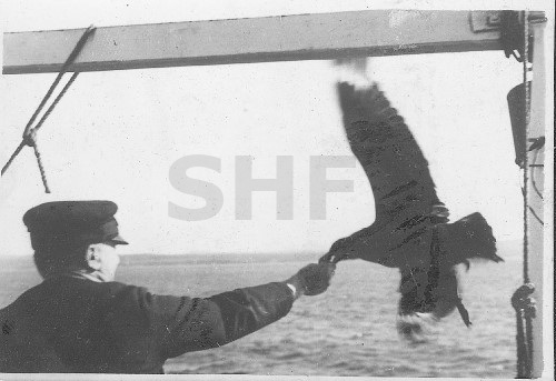 A seaman feeds a mollyhawk on the wing at sea. The inside of a Japanese midget submarine is very tight and there is an 1846 (!) photo of a very early steam paddle tug. … and there’s more.