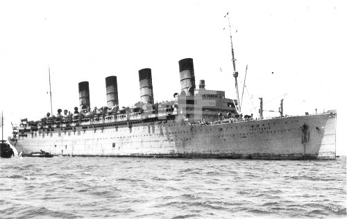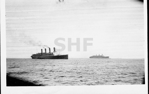 AQUITANIA and QUEEN MARY off Fremantle 1941. SHF Coll.