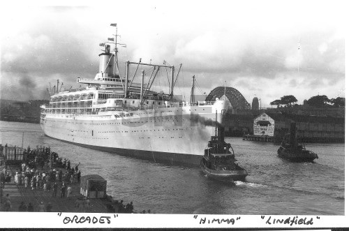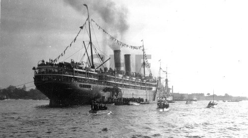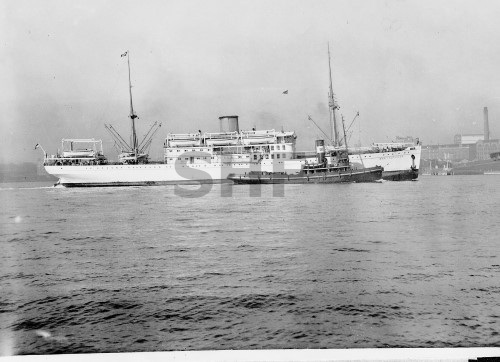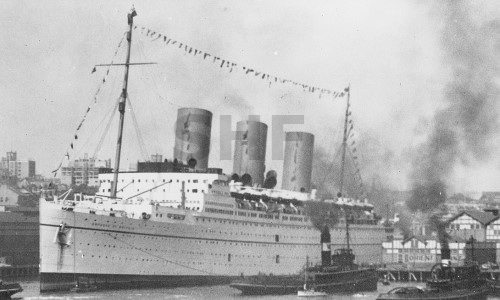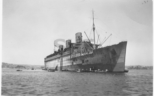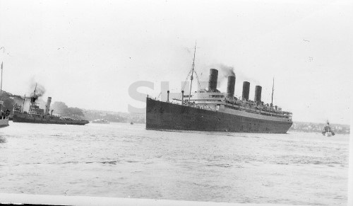 AQUITANIA with tugs, Sydney. SHF Coll.