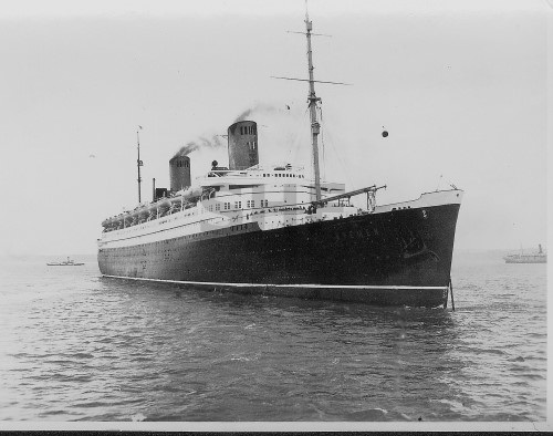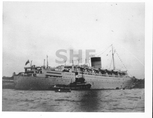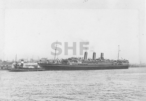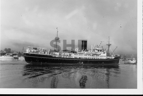CARONIA 1948, with tug, SHF Coll.