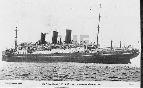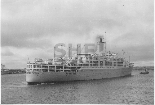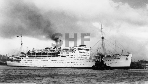 STRATHNAVER 1931-1962, outbound with tug WONGA, postwar.SHF
