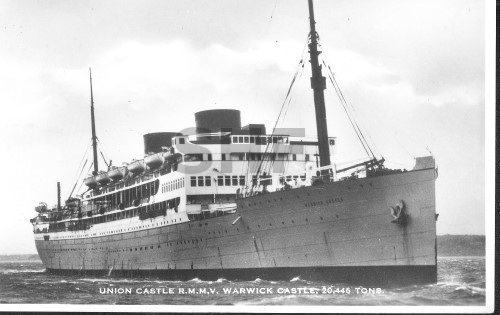 WARWICK CASTLE 1931- sunk 1942. postcard. SHF Coll.