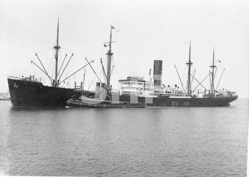 ODER c.1927-1941 at Fremantle with tug WYOLA. SHF Coll.