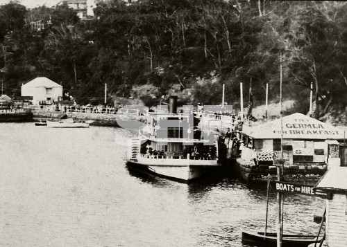 Few people lived north of the harbour, so it was an adventurous entrepreneur who set up the North Shore Ferry Company in 1861, when there were far fewer than 1,000 people living in the area. Manly was, from the 1850s, being opened up for subdivision and urban settlement, as well as being promoted as a ‘resort’ for Sydney’s burgeoning middle classes. The ferry service helped develop Manly, with its population growing from about 500 in 1871, to 1300 in 1881, to 3000 in 1889, 5000 in 1896, and 8000 in 1906.